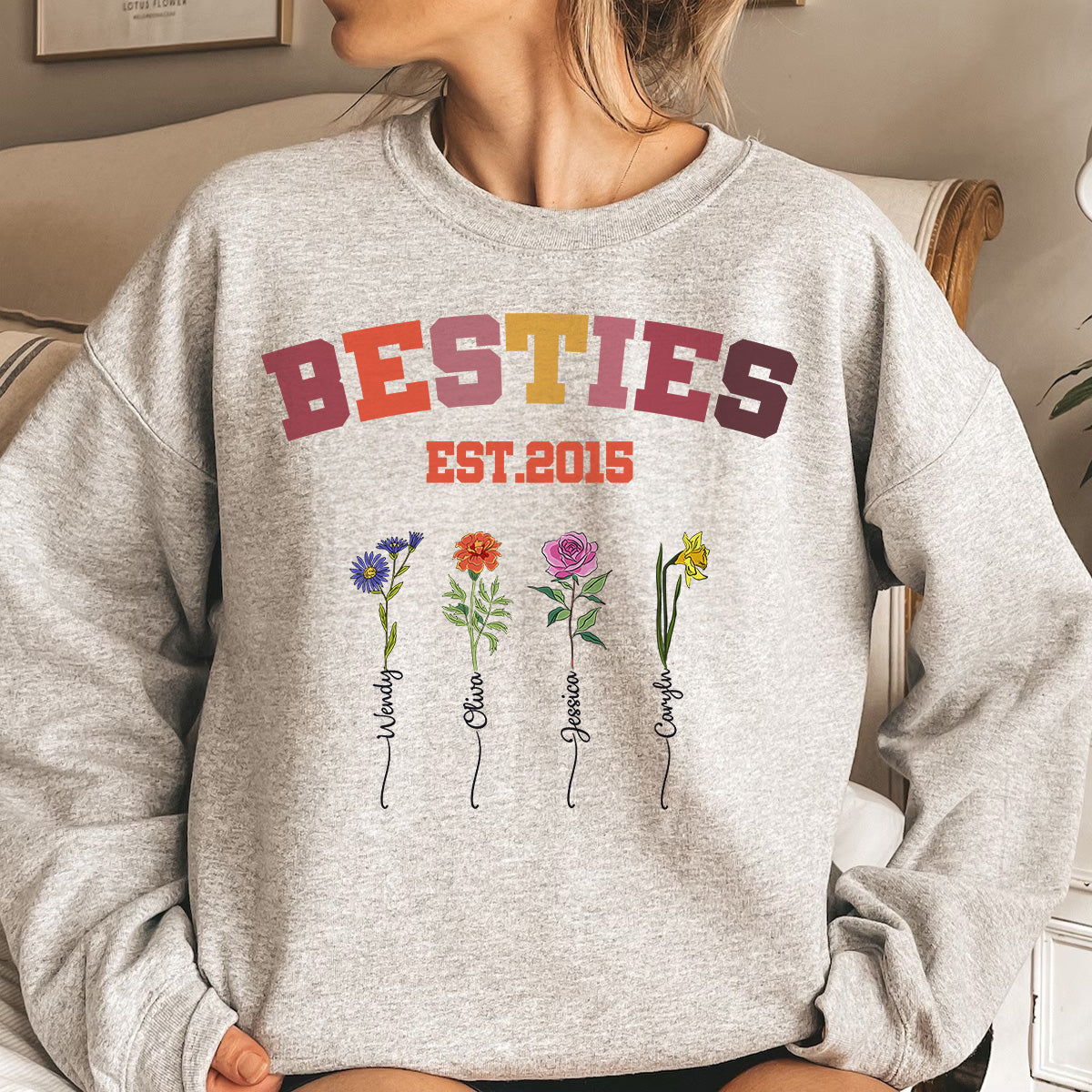 Besties Est Birthflower Friend Gift – Personalized Sweatshirt