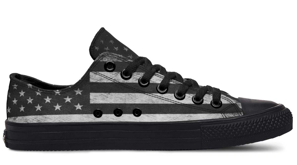Black American Flag Low-Top Sneakers – Minimalist Patriotism