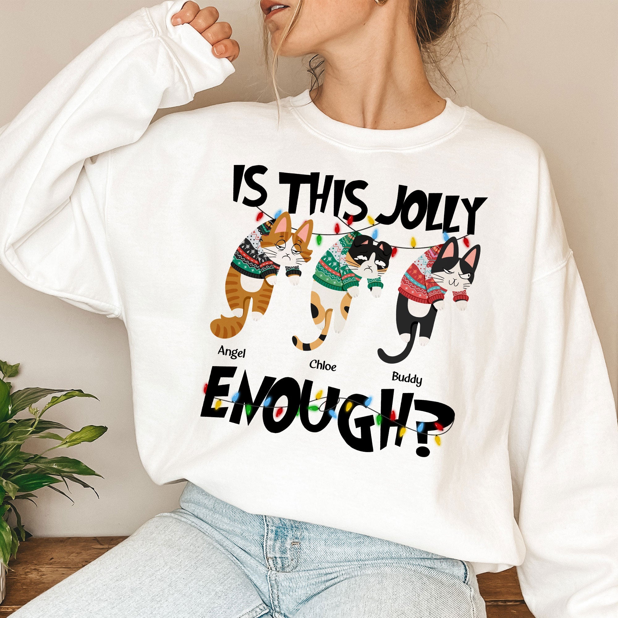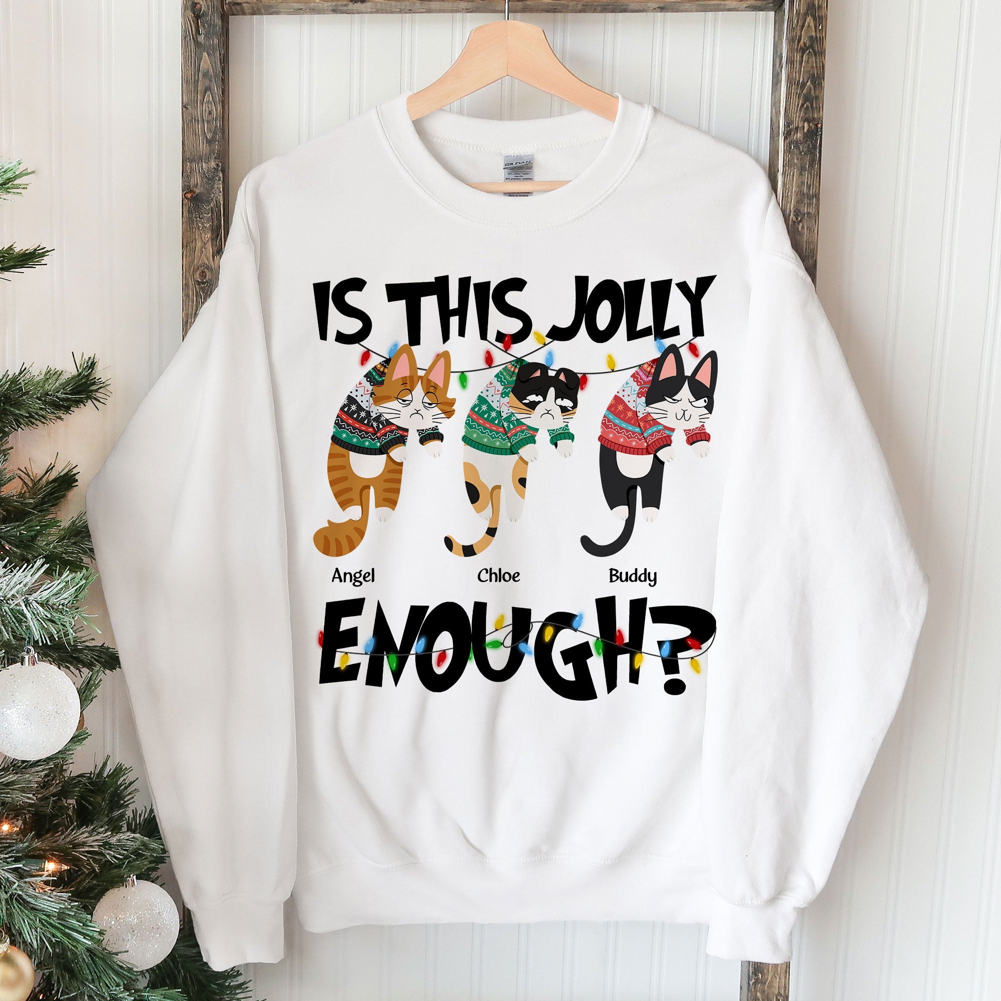 Is This Jolly Enough – Hanging Cat – Personalized Sweatshirt